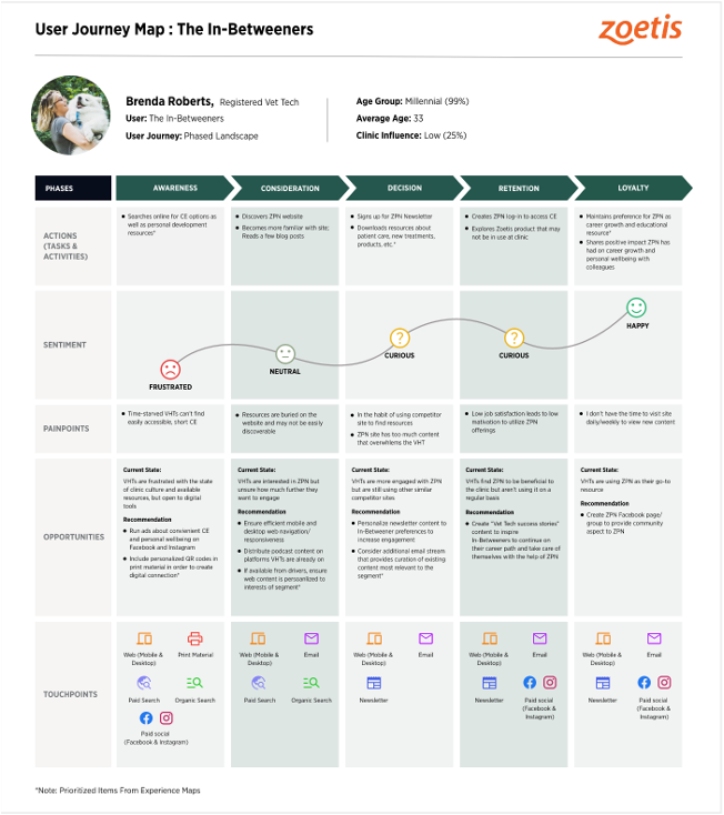 The engagement resulted in a clear roadmap for segment-specific personalization, driving internal alignment and prioritization across marketing, content, and sales teams. The journey framework enabled more empathetic, targeted communication and laid the groundwork for smarter, data-driven planning across Zoetis’ channels.