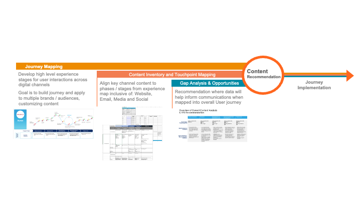 Mapped existing content assets to each stage of the journey for all three segments. Evaluated each piece for relevance, format, tone, and utility — uncovering areas of saturation, gaps in key touchpoints, and opportunities to refresh or modularize underperforming content.